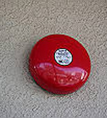 音響装置とはようするにベルです。これは中心から1m離れた位置で90db以上という規定がある為かなりの音量です。これもまた設置の距離が決まっていますが、歩行距離ではなく水平距離が25m以下となっています。これは歩いて行かなくてはいけない発信機と違い、音が聞こえればいいベルだからですね。また、発信機の50mの半分である為通路には音響装置が単独で設置されている箇所もあります。